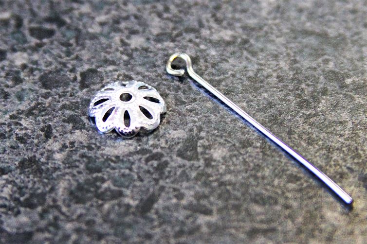 8. Insert the eye pin into the bead cap, with the loop on top
