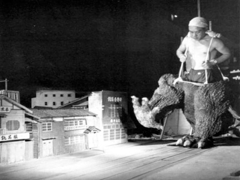8. Godzilla stumping over a town.