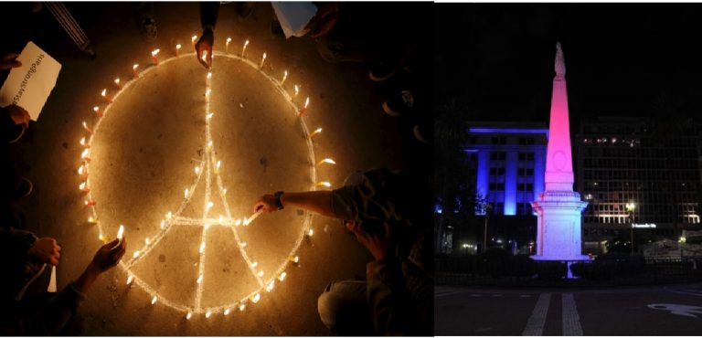 The day after the attacks many countries lit up important landmarks and monuments in the colors of France to show their support and even a week after the attack, many powerful images continue to appear.