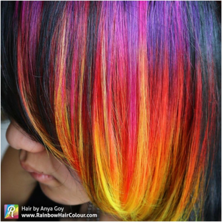 From gentle color combinations to loud and rich vibrant colors, the sunset hair color may be unusual, but it’s also strangely beautiful.