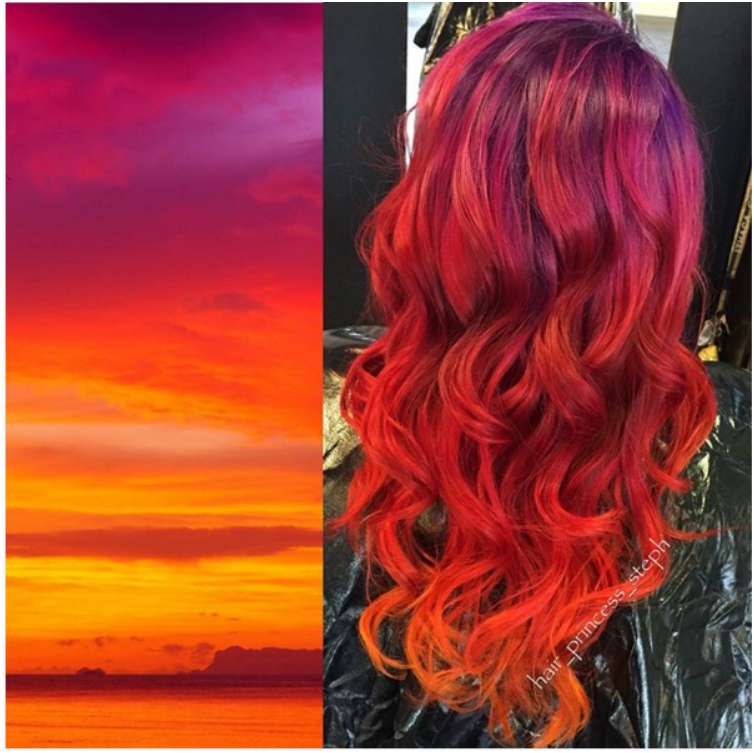 The latest hair-coloring trend is probably one of the boldest and most vibrant yet: the sunset hair.