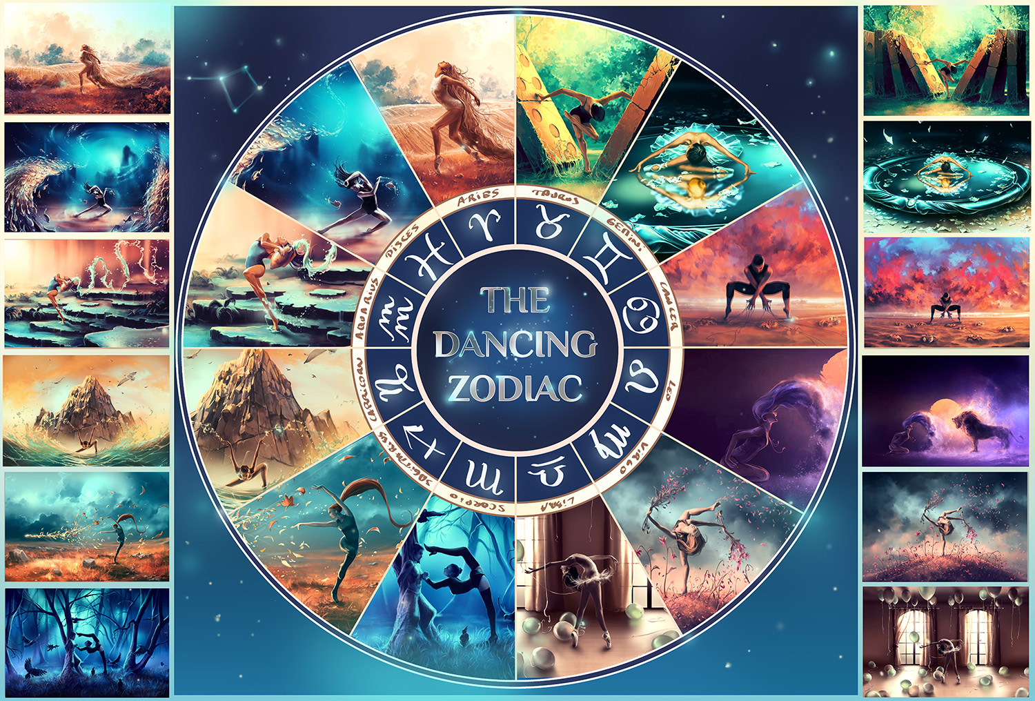 His series of dancing zodiac signs shows captivating moments while performing an otherworldly dance routine, each more beautiful than the last.