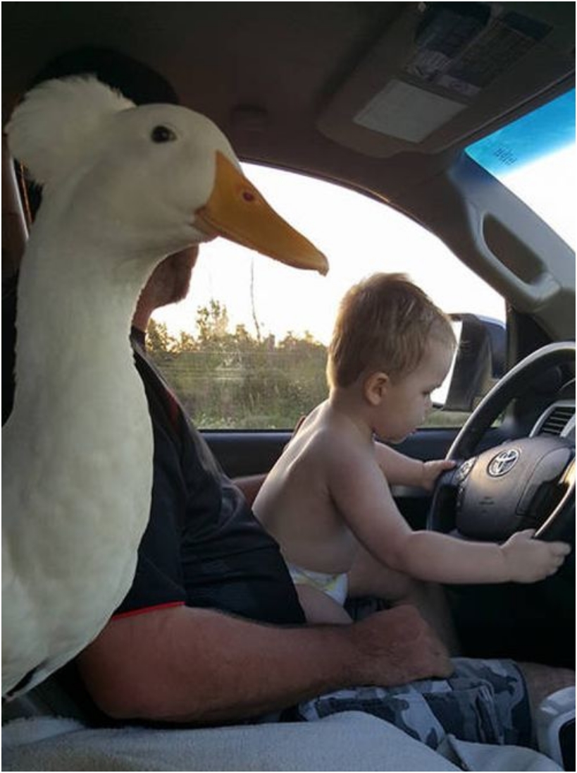 Now Tyler is a few years old and Beaker is a full grown duck but their bond is as strong as ever, doing everything together.
