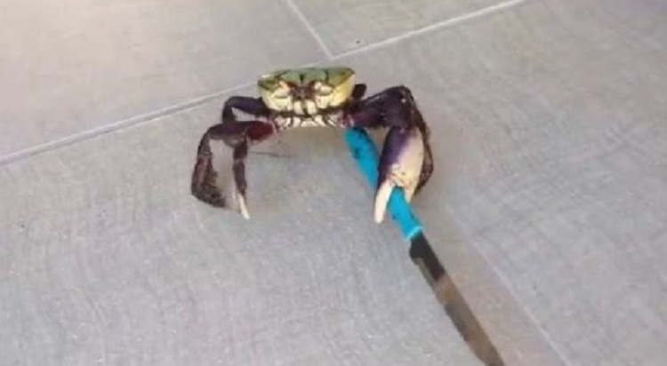 This image was taken after the crab already entered the man’s home and upon discovery, instead of fleeing the scene, it picked up a knife and started a defensive retreat.