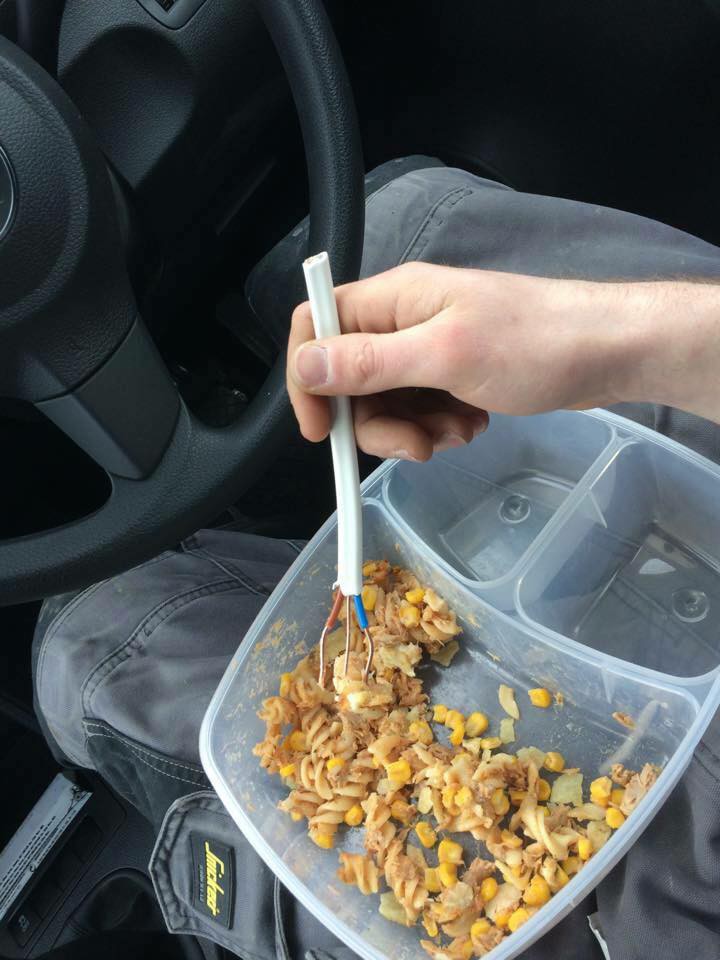 2. When you desperately need a fork, a wire would do.