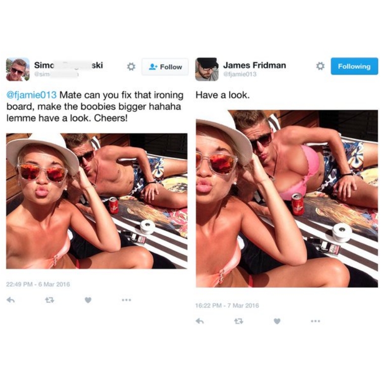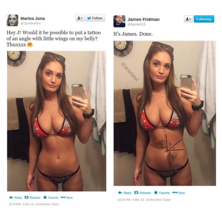 The ingenious part is that he photoshops the pictures just as requested, only in the way he understood them.