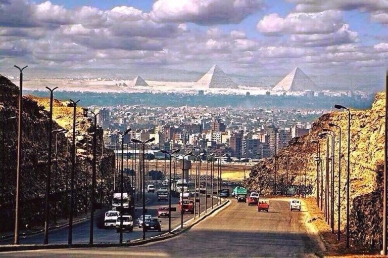16. The Great Pyramids of Giza as seen from the streets of Cairo