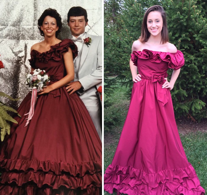 Unfortunately, not every family is able or willing to pay hundreds of dollars for a dress that will be worn probably just for the prom night and never again.Which has lead to many girls rummaging trough their mother’s closet.