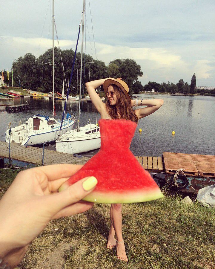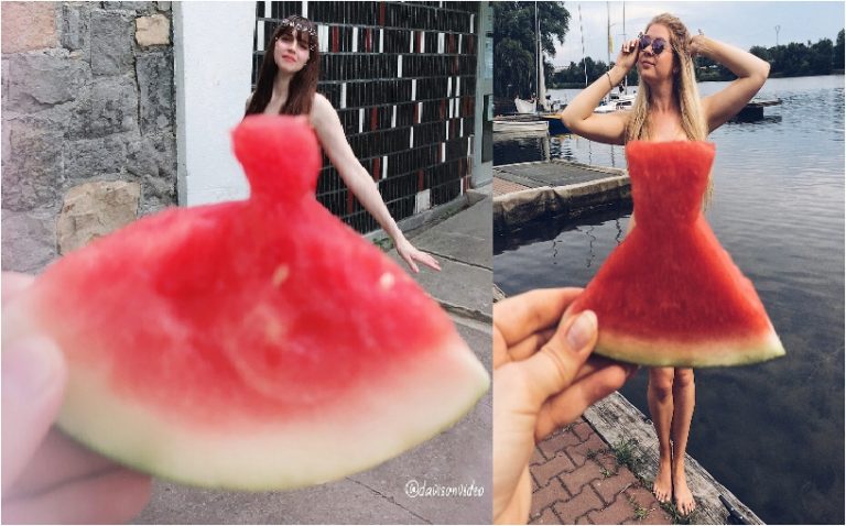 You carve up a piece of watermelon, shape it into a dress and take a picture with it while someone is posing in the background. It looks like one’s wearing a real watermelon dress, so fresh and juicy, is comes as no surprise that so many people are trying it out.