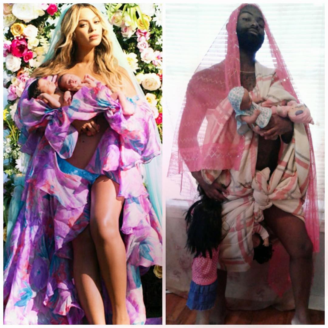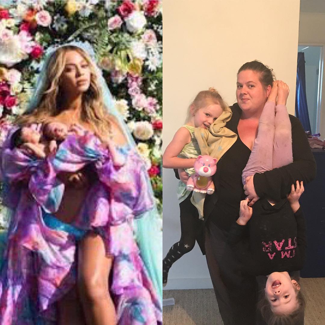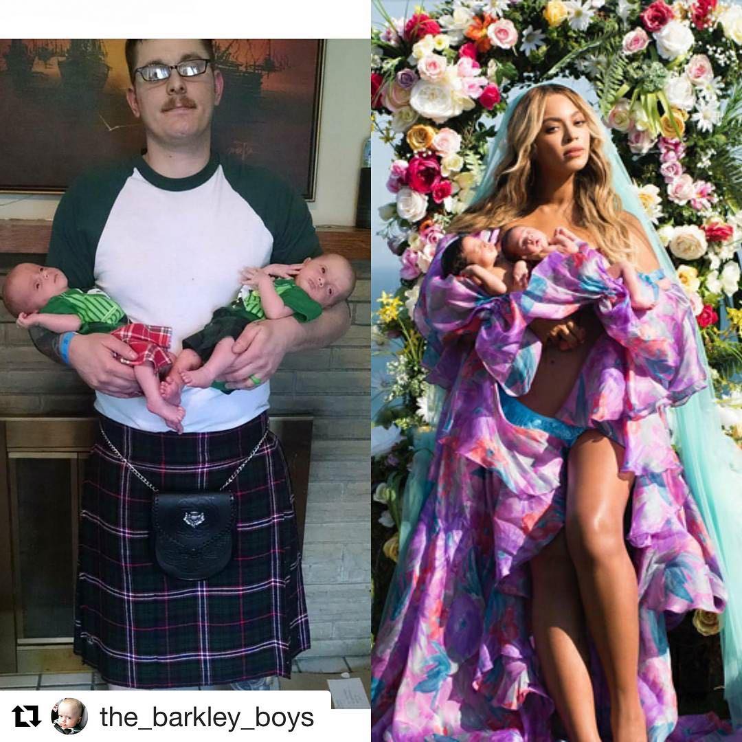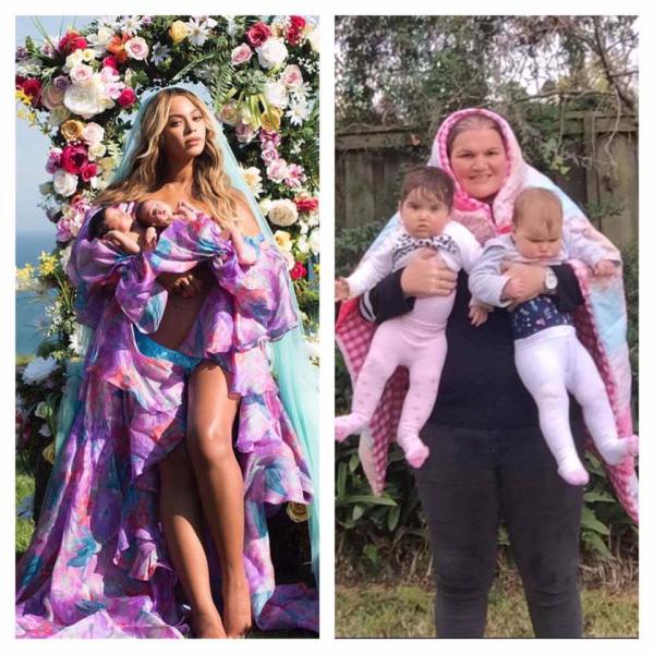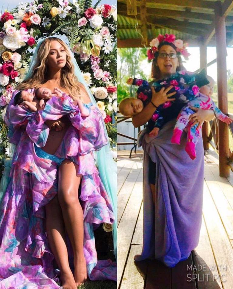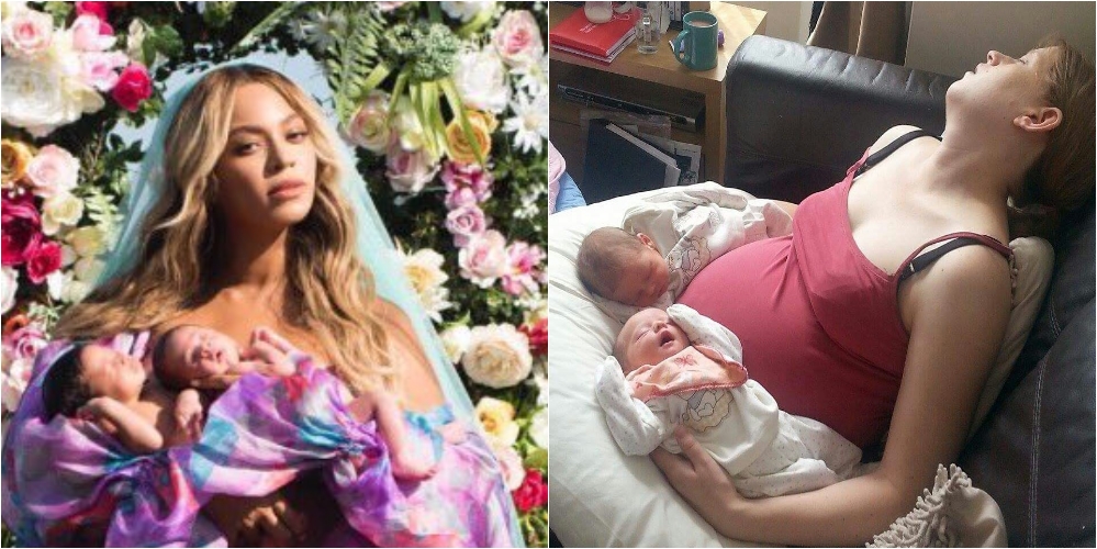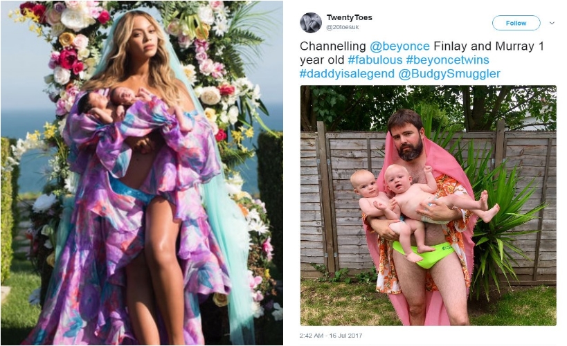 Given that Beyonce’s picture, while beautiful, it isn’t exactly realistic, many people have nailed at recreating it in a more real-life setting. The results are absolutely hilarious, from parents showing real struggles with twins, to others who just want to be part of the fun. Here is what the social media has managed to produce so far.