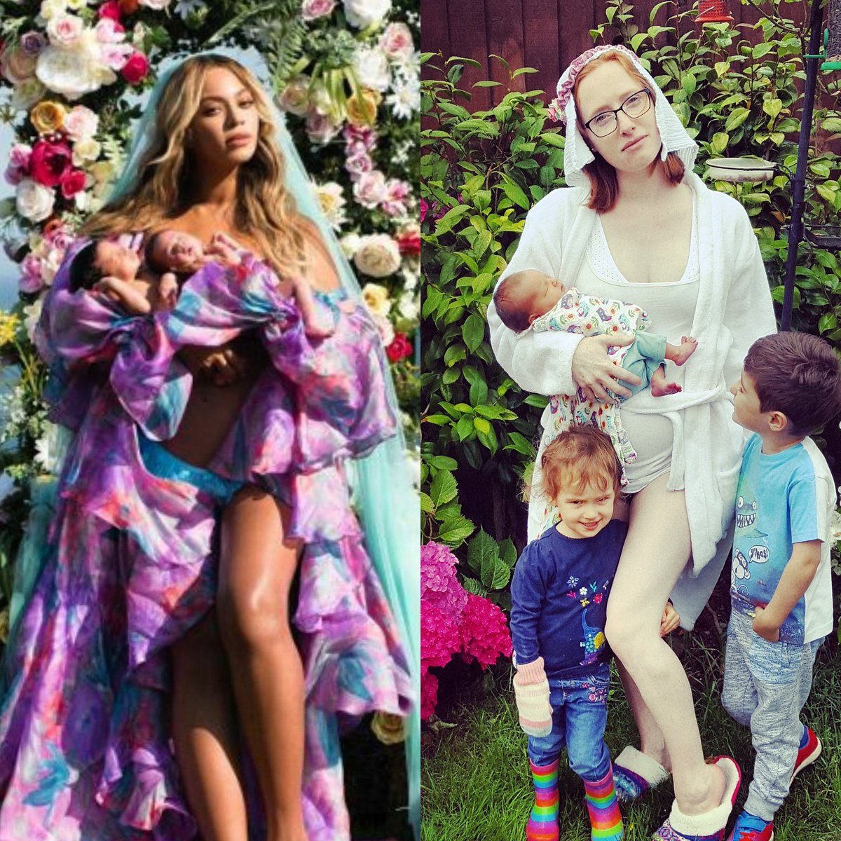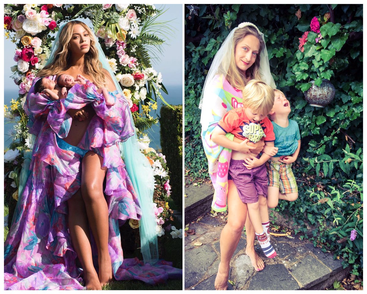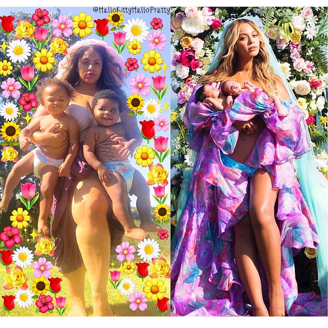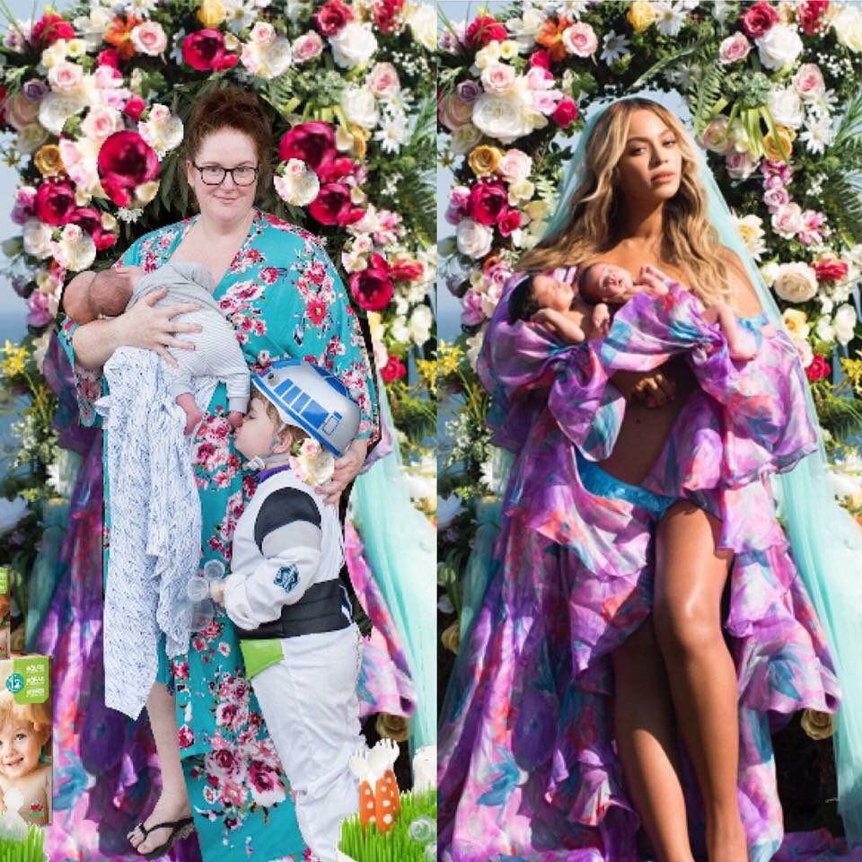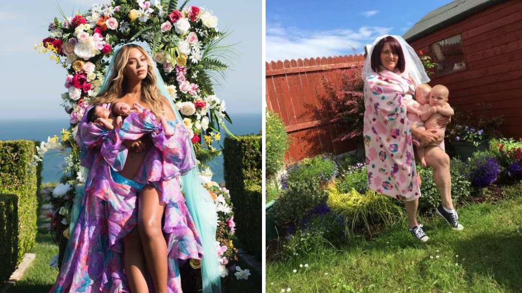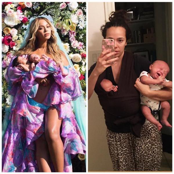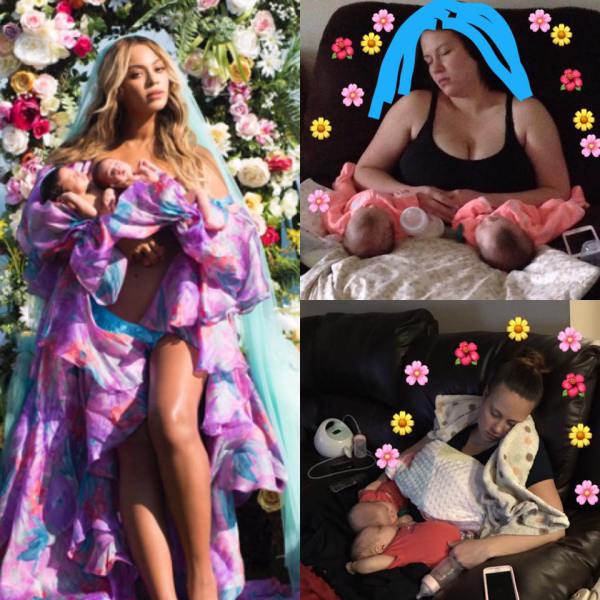 Given that Beyonce’s picture, while beautiful, it isn’t exactly realistic, many people have nailed at recreating it in a more real-life setting. The results are absolutely hilarious, from parents showing real struggles with twins, to others who just want to be part of the fun. Here is what the social media has managed to produce so far.