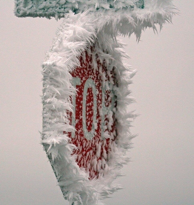 14. Frost blown stop sign