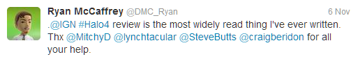 Now, you recently tweeted that your Halo 4 review was the most widely read article you’ve ever written, where would you put this on your list of career high points?