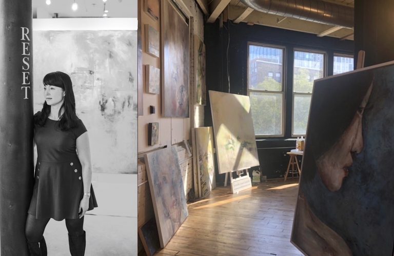Jennifer is currently participating in the “New Narratives: Reclaiming Asian Identity Through Story” exhibition curated by Leslie Anne Condon, and organized and presented by Unbound Visual Arts. “New Narratives: Reclaiming Asian Identity Through Story” features forty artworks by twenty-five Boston-area Asian artists who are exploring aspects of their identity through their art, as well as Asian culture and narrative informed by personal experience. Jennifer’s featured work, Everyday Thoughts, is a solemn 38 x 50 oil on canvas piece. It is part of her new series “Knots of the mind” which explores the ongoing melee between the heart and the mind, complicated by love, hunger, power.