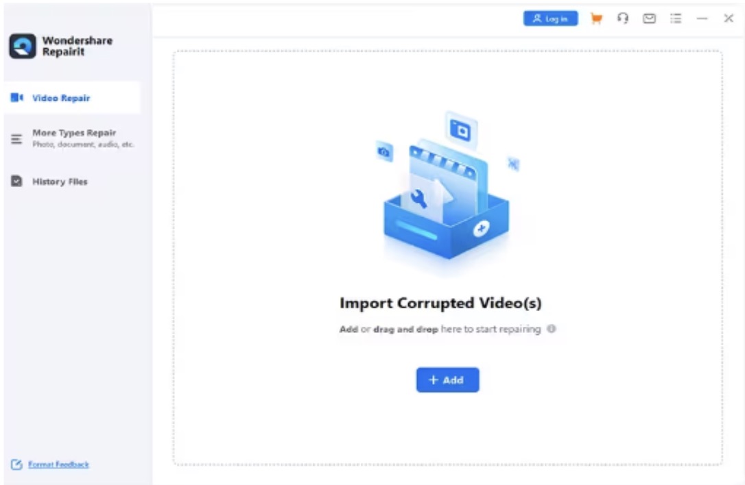 To begin the MP4 file recovery process, download and run the Wondershare Repairit Video Repair Tool. Next, click the “+Add” button in the “Video Repair” section of the application. This action adds your corrupted MP4 video files to the repair list, preparing for the recovery process.