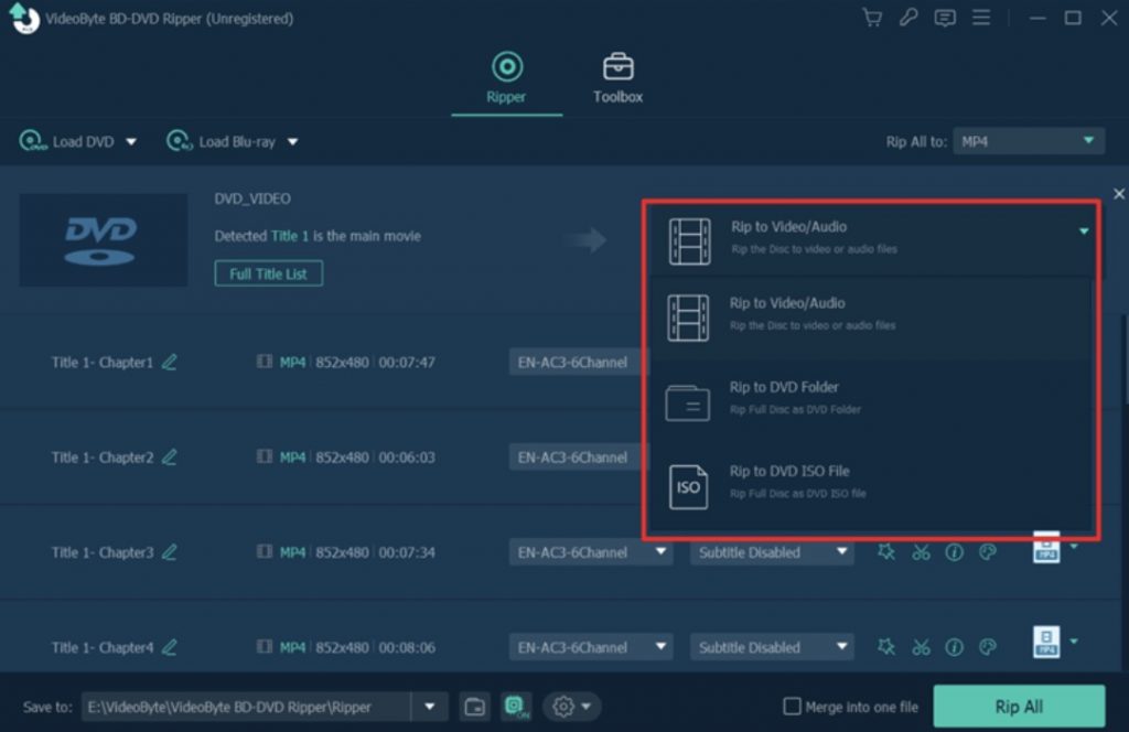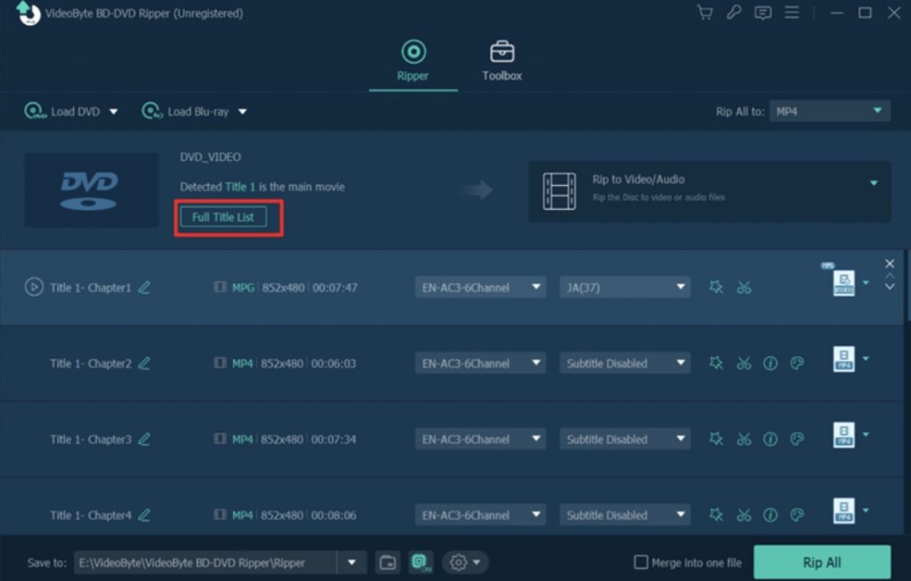 VideoByte BD-DVD Ripper is one of the best DVD rippers for ripping both DVD and Blu-ray discs. It can bypass their protection and rip them into popular formats such as MP4 and MOV. Additionally, it can also be an audio ripper to rip DVDs and Blu-rays into audio formats like MP3, AAC, and M4A. This software supports ripping Blu-ray and DVD at a 1:1 ratio in lossless quality output, preserving the same quality as the original discs. VideoByte BD-DVD Ripper supports ripping DVDs with all subtitles and audio tracks by default with Windows version, and currently Mac version only preserves one hard subtitle in the ripped files.