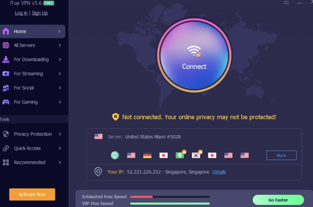 For the same purpose, users can benefit from iTop VPNs because they offer very fast connections. Unlike other free VPNs, which can dramatically decrease the speed of an internet connection, iTop VPN provides its users with a high-speed connection. This is especially helpful for tasks like streaming or gaming, which entail steady and fast connections.
