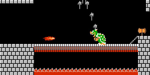 Mario has come a long way since in the last 25 years, but people often forget that the original Super Mario Bros. was an incredibly difficult platformer that required memorization and sheer skill. The last castle in the game (found in World 8) was a time-sensitive dash through a confusing maze. The reward for making it to the end? A brutal face-off with a hammer-throwing King Koopa. Downing Koopa is easy enough if you’re still empowered by a Fire Flower, but getting through the avalanche of hammers and under Koopa to drop his bridge still stands as one of the toughest in-game moments of all time.