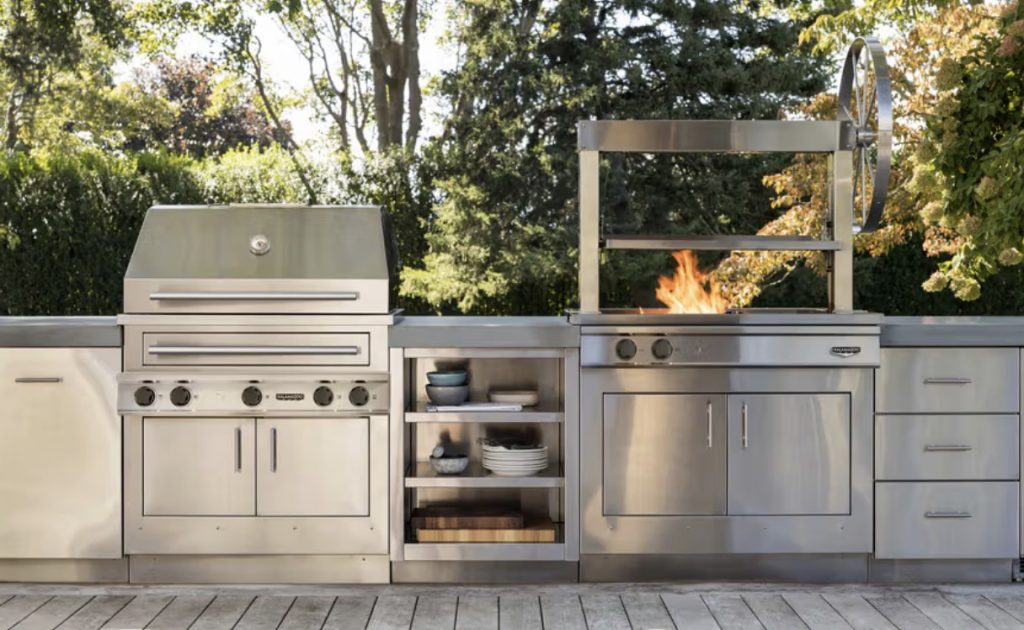 Kalamazoo is often considered the pinnacle of luxury outdoor grilling. Built to order in Michigan, their grills are made with 304 or marine-grade 316 stainless steel. The standout feature is their Hybrid Fire Grill, which allows users to cook with gas, charcoal, and wood simultaneously or independently. This versatility appeals to serious grilling aficionados who want complete control over flavor and heat.
