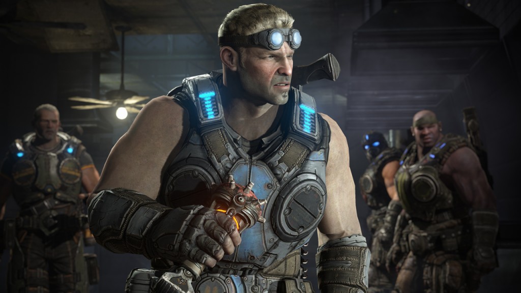 The graphics haven’t come a long way since Gears 3, although to my eye there seems to be a Crackdown-esque ‘cel-shaded’ approach during times within the game and environments definitely look more vibrant and varied thanks to the use of a new ‘non-brown’ colour-palette. Generally it’s all well and good in this department, although I honestly found for the first time ever in the series I was having trouble distinguishing between my team and the Locusts during large fire-fights; obscured vision meant I occasionally wasted ammo blasting away at my own team-mate while a Grenadier was behind me chewing on my heels. Frustrating, but I put that down to my gung-ho attitude more than the fault of the game. The real significant change here is in the core gameplay mechanics. While the fundamentals are definitely still the same (you can roadie-run, crouch behind chest-high-walls, chainsaw, use meat shields, impale with a retro-lancer and so on) a lot of the game has been generally stripped back and it’s a new approach which I feel works really well: keep it simple. Cycling through weapons is now as easy as pressing the “Y” button, locating your team is just “down” on the D-Pad and the linear narrative is now broken into bite size chunks (formerly known as “parts”) that record your general details such as time taken, kills, accuracy, head shots, number of times downed etc. The final result gives you a star rating out of 3 and compares your score against other Gears gamers around the globe. To me, the whole thing is very reminiscent of the latest Hitman game in so much that the better you fare during each segment, the better you score – and while that’s a very arcade-like approach to take to a game like this it definitely pays off dividends.. To ramp up your score (but to make life significantly harder) you will often encounter large Gears logos spray-painted onto walls. By approaching these you will be offered a decision into accepting an interesting new feature called “Mission: Declassification” – at its core it’s a means of making your life harder (it usually adds an additional challenge to your objective – whether that be by reducing your visibility, handicapping your weapons, protecting an area for a certain amount of time etc.) but in the long-run its a neat way of bumping up your overall score, unlocking some extras and allowing Kilo squad to divulge further information on their mission in retrospect. A very welcome addition to the Gears of War franchise and, should there be more in this upcoming generation, something I’d happily like to see implemented again.