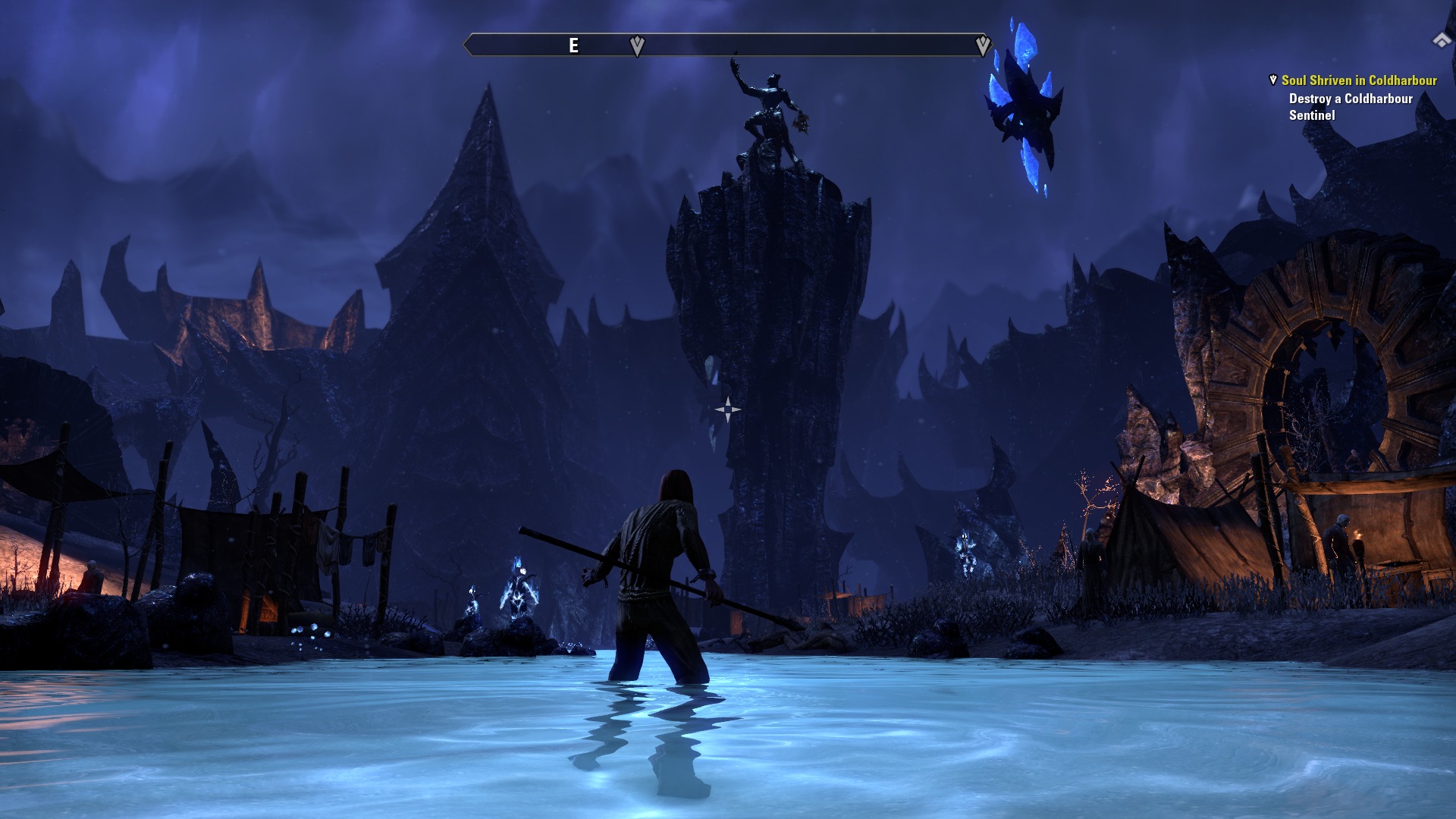 I worked my way through the tutorial, which didn’t take too long at all. Here we discovered the general plot outline – your character has sadly been sacrificed by the evil Molag Bal (Malcolm McDowell) who schemes to enslave all the mortal souls of Tamriel, with you now existing in this weird hellish state of limbo called Coldharbour. With the help of The Prophet, a blind, mysterious Dumbledore wannabe – you learn your way around the game’s fairly simplistic MMO set-up and transport yourself into the real world of Tamriel. From one Coldharbour to a sort of warmer-harbour, you wake up on the deck of a ship. You gather your thoughts, take a deep breath and leave the docking station in the glorious sunshine with the promise of adventure ahead of you.