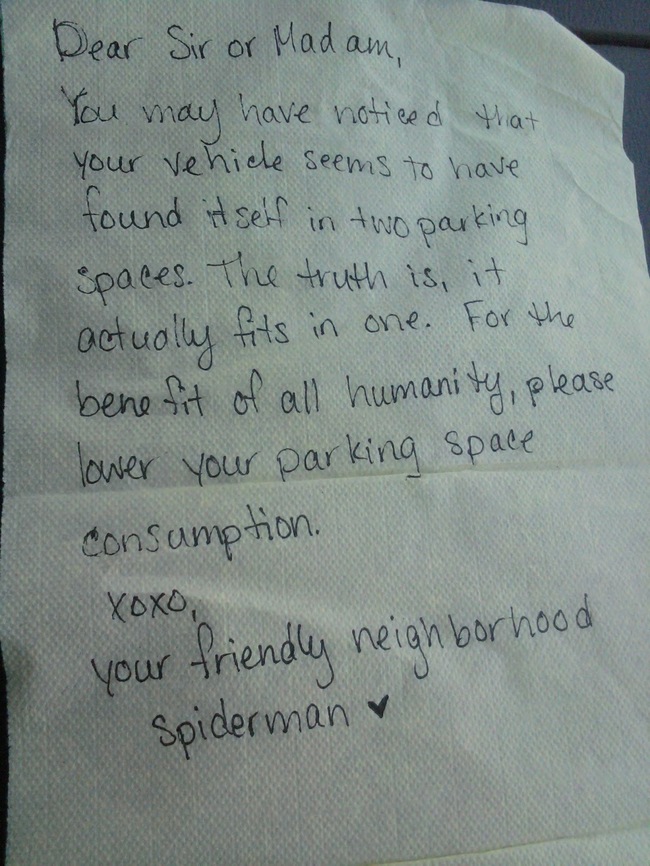 I don’t know what they are thinking for parking where they are not allowed or taking two car spots for parking their precious car.