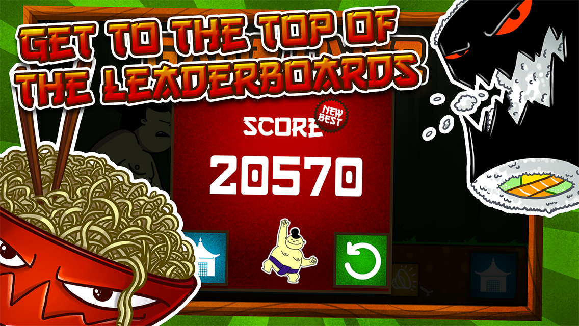 Right after you launch this game, you will see Sumo Sam standing in the middle of your screen, ready to smash some sushi. With the last update this game was made even more responsive than the previous version. The interface is designed to be super easy to use, so you can intuitively find what you are looking for. There is the market where you can buy 3 additional lives. The developer wanted to make this game challenging by including the Facebook & Twitter sharing buttons and integrate it with Game Center – in order to see where are you ranked on the global leaderboard.