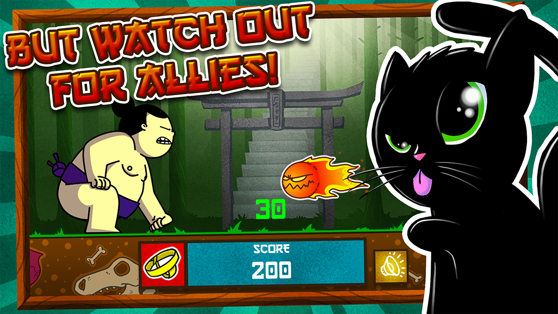 There are other characters in this game like bees, cats and birds that you should avoid hitting, because they are your friends and hitting them is very bad for our warrior’s reputation, which is why you lose some points