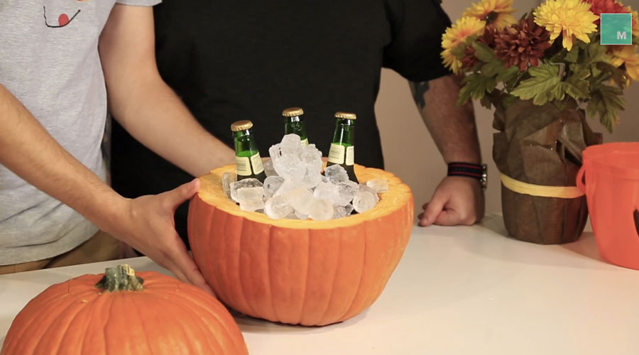 16. Turn a pumpkin into a Beer cooler. Perfect for this Halloween