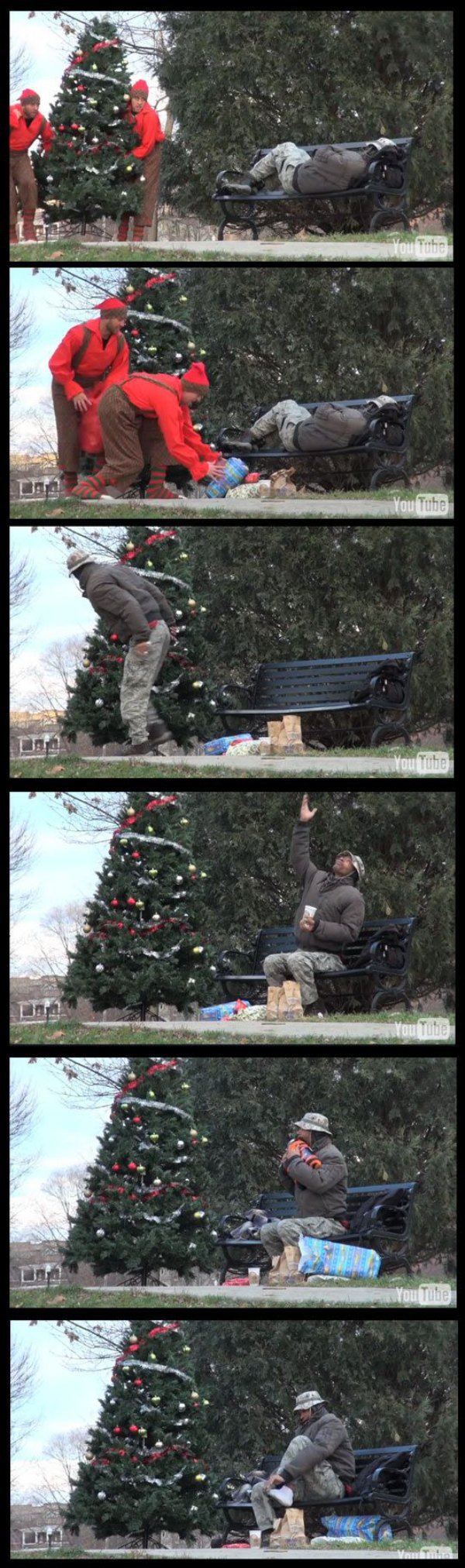 When you see something like this gives you motive for doing the same thing for the next homeless guy or person in need. They will be grateful for your existence and you will be proud for doing something small for you, but enormous for them.