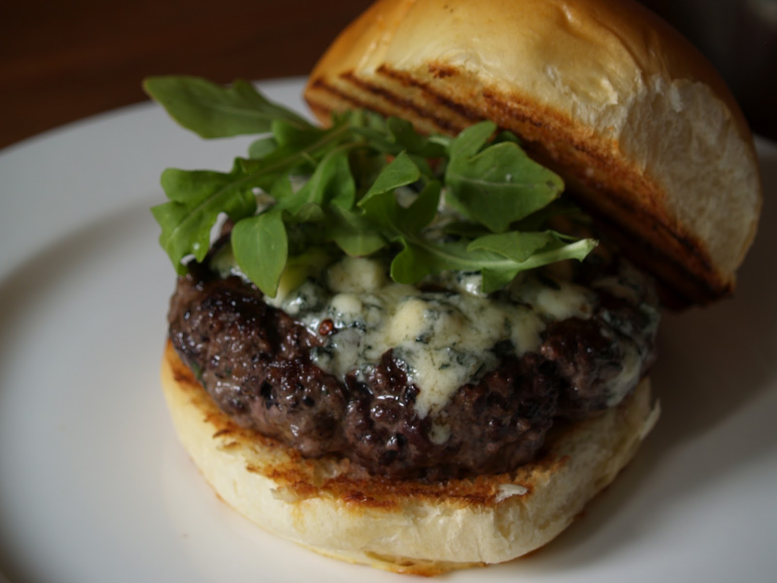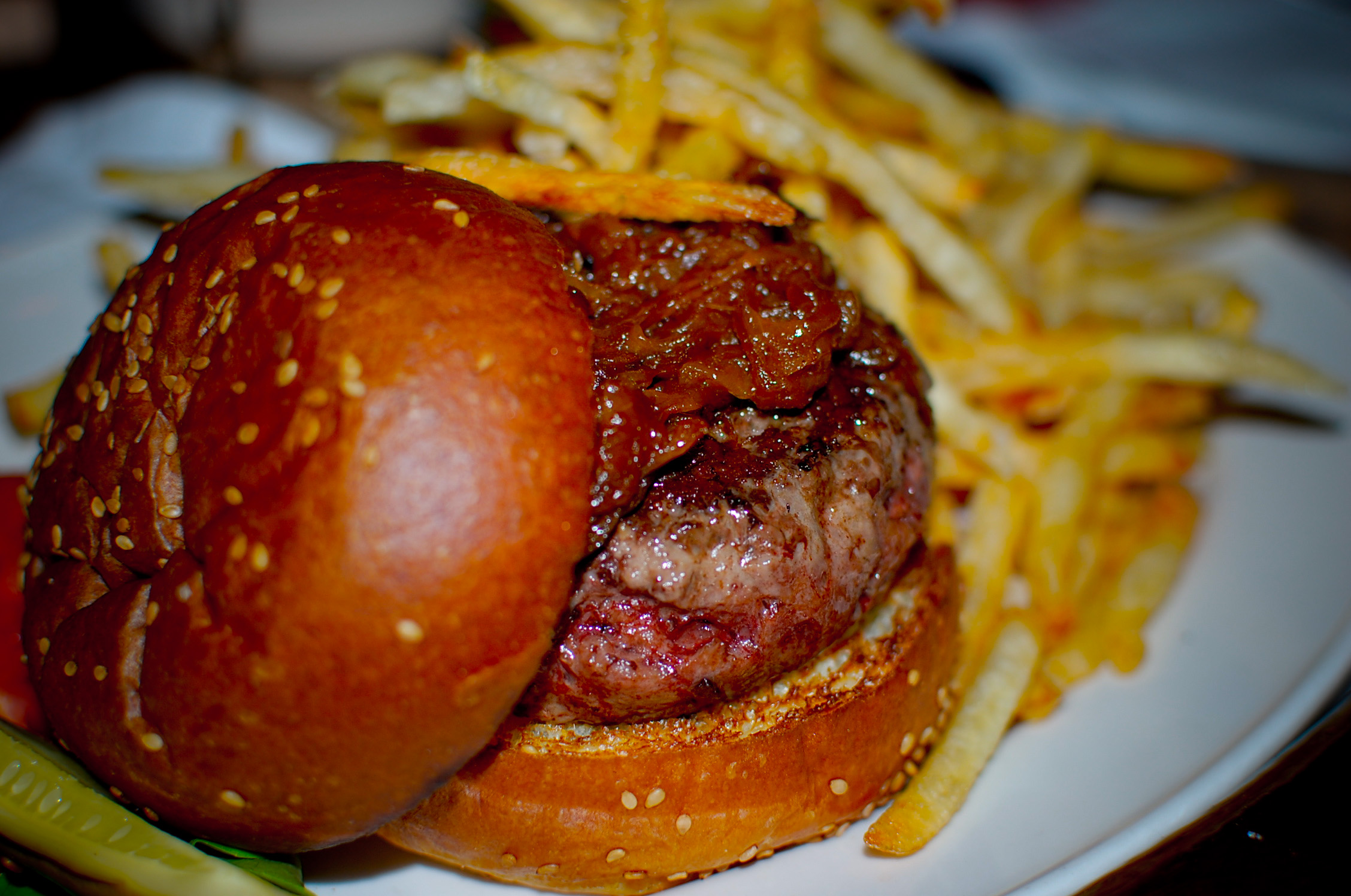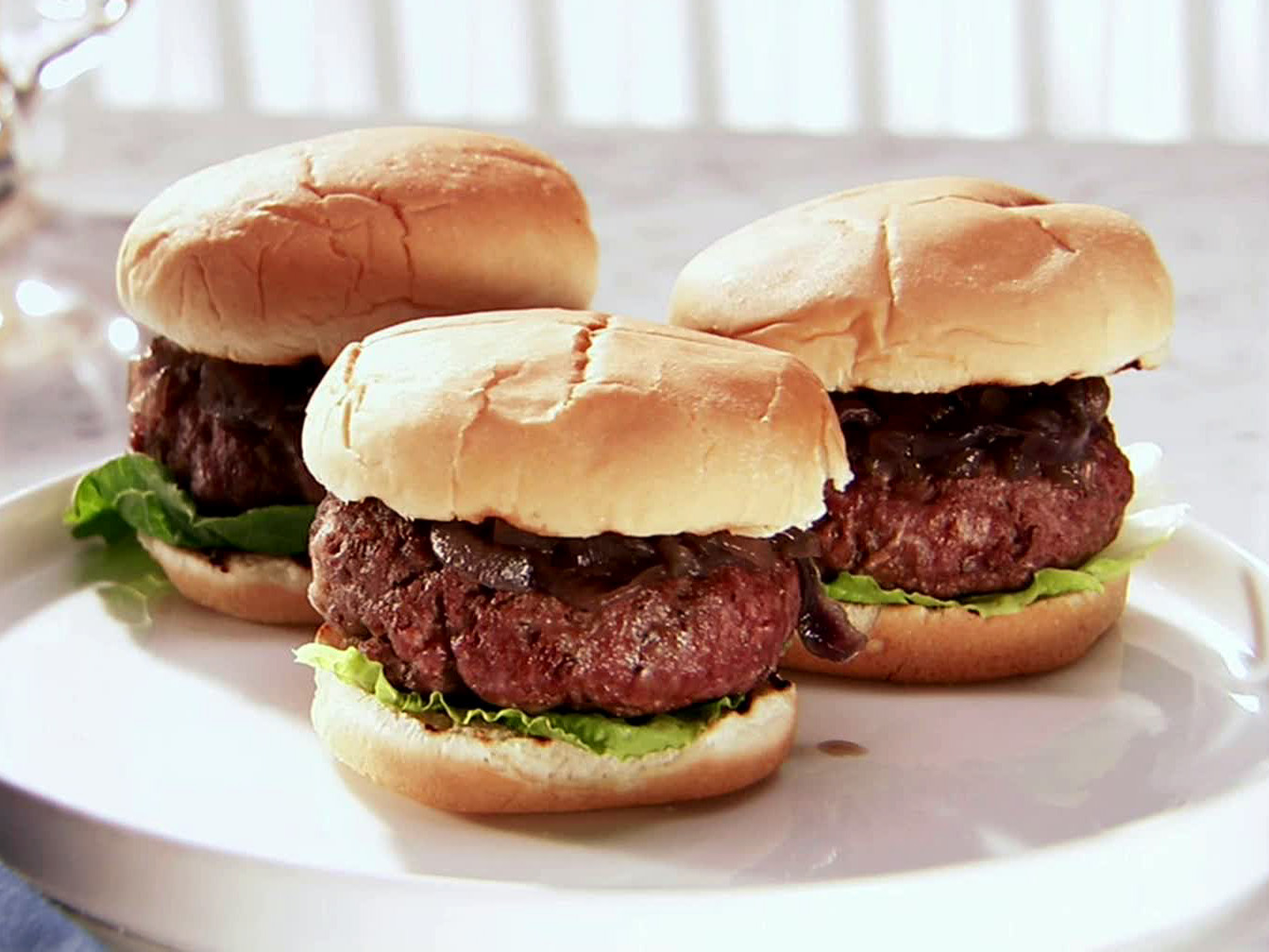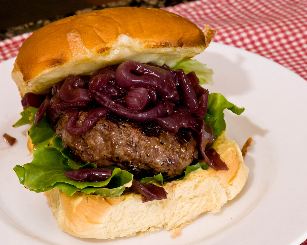 Bison Burgers with Cabernet Onions and Wisconsin Cheddar