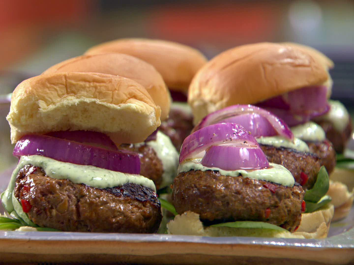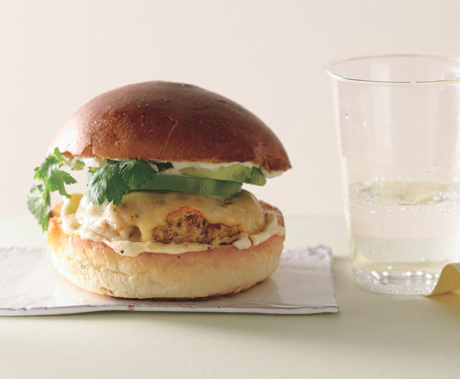 Open-Face Chicken Burgers with Basil Mayonnaise