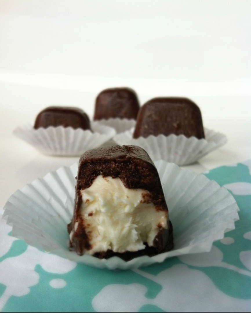 Bite-sized chocolate cheesecake bites. Your favorite recipe now in small portions