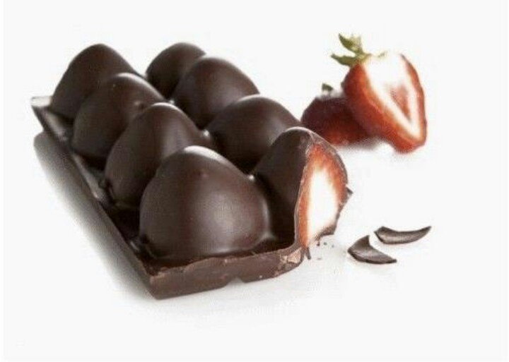 Make chocolate strawberries. Spray a little bit of oil onto the tray, pour chocolate inside and dip the strawberries! Oh man…